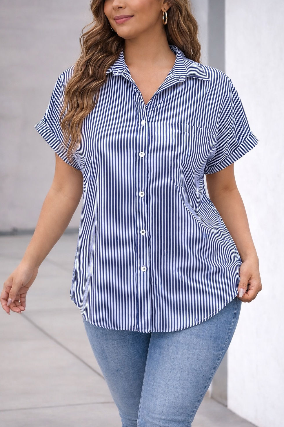 The soft cotton-blend fabric offers structure without stiffness, making it comfortable for all-day wear while still holding its shape beautifully. Finished with a functional chest pocket and roll-up sleeves, it’s perfect for casual days, errands, or dressed up with heels for a chic look.